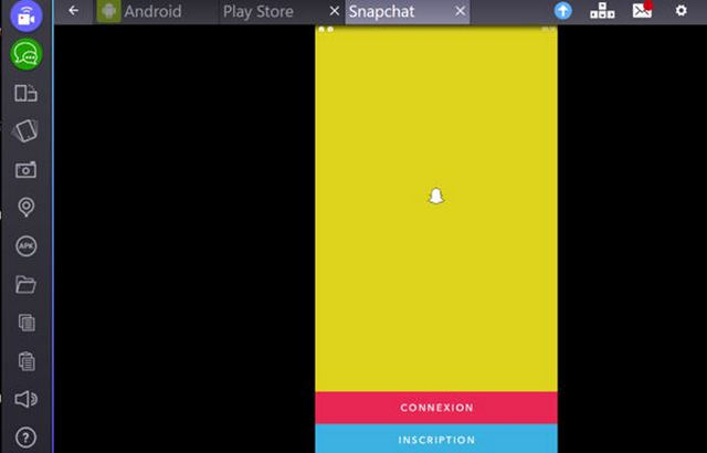 الملف ، مرة واحدة بعد اكتمال التثبيت يمكن تشغيل سناب شات عبر جهاز الكمبيوتر داخل بلوستاكس.